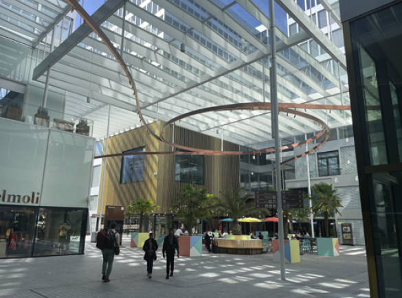 The Circle is a 180,000 square metre mixed-use development incorporating office space, 540 hotel rooms, significant ground floor retail and six restaurants as well as the Zurich University Hospital. The project was completed in November 2020 and is a 51:49 jointventure between Zurich Airport and Swiss Life, a life insurer with CHF 276 billion (USD $288 billion) in assets. The building is directly connected to the airport and landside retail precinct via a short underground walkway or via the above ground transport hub that serves 25,000 commuters each day.