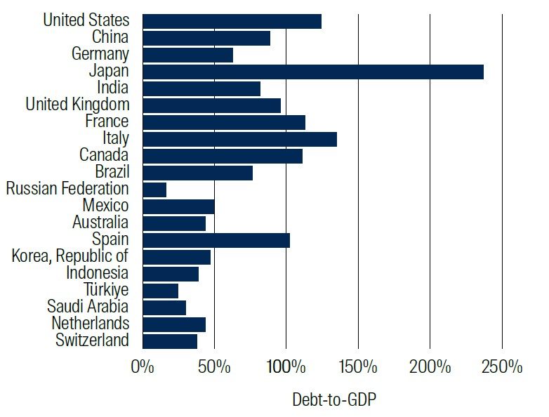 Chart 1: Government debt-to-GDP for 20 largest economies