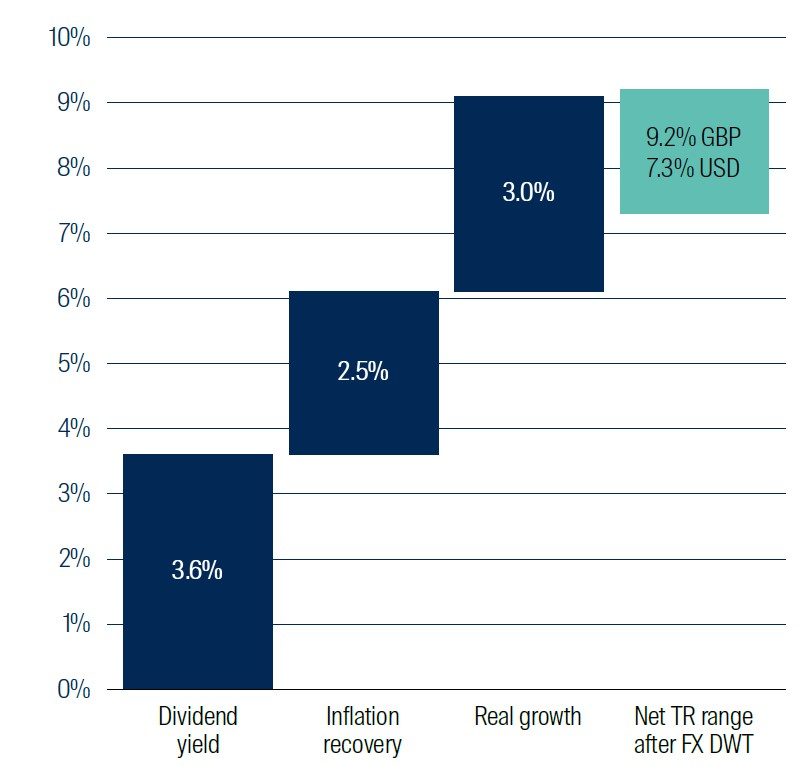 We believe that through the cycle, asset class fundamentals support Earnings Per Share growth of between 5% and 6% per annum, plus a dividend yield of between 3% and 4%, giving what we believe is a highly competitive total return of between 8% and 10% per annum.