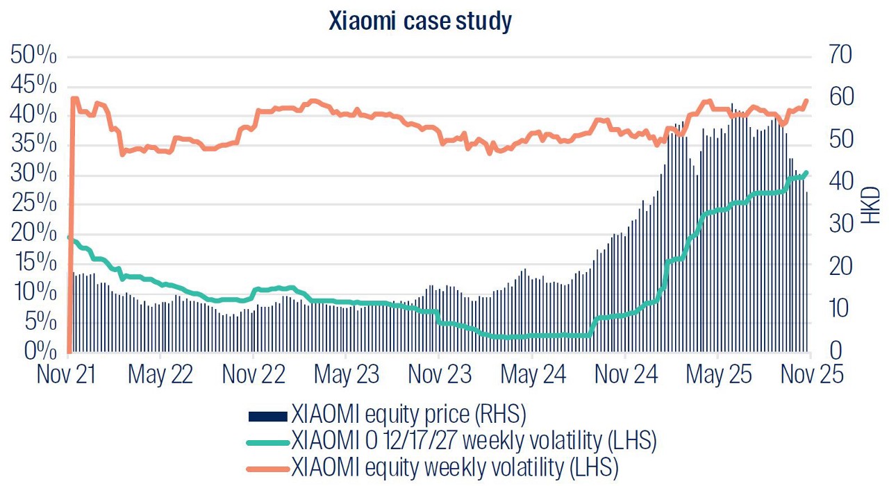 For example, we purchased XIAOMI 0.000 17-DEC-2027 back in late 2023, a year when the Hang Seng Index returned -14% for the calendar year. This 0% coupon, non-rated bond was priced below par at 89 with a yield1 of 5.94% at time of purchase, which providing an attractive yield on par with its longer dated comparable bullet bond, XIAOMI 3 ⅜ 04/29/30 Corp, which yielded 5.93%. Xiaomi was rated Baa2/BBB at time of purchase, so we saw this as a fundamentally sound bond offering attractive income, with a “free” equity option until the bond’s puttable date of December 2025. In late 2024, Xiaomi’s bonds rallied above par, turning its previously ‘free’ convertibility option into positive value. We eventually sold this bond in 3Q 2024 for a profit of 12% as market sentiment and the company’s business cycle turned positive.