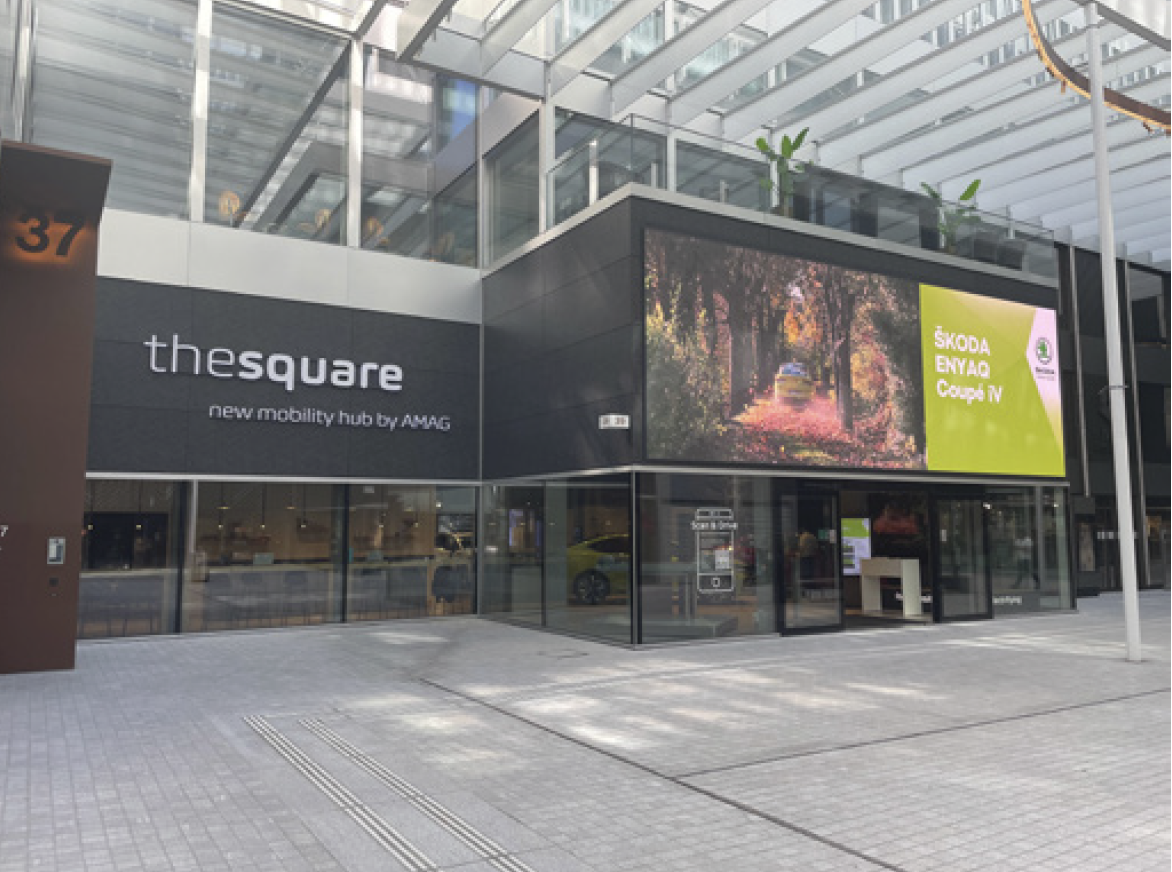 The Square is a concept store from Volkswagen where electric vehicles from their various brands are displayed. The store is aimed at educating visitors on the process of going from a combustion engine to an EV; addressing concerns such as charging infrastructure in the home, range anxiety and the driving experience.